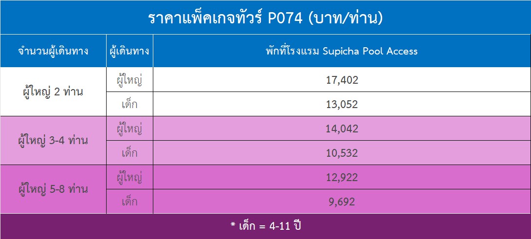 - สำหรับเด็กอายุ 1-4 ขวบ ไม่คิดค่าบริการทัวร์