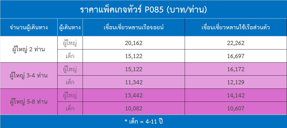 ปล. โปรแกรมทัวร์นี้อาจมีการเปลี่ยนแปลงได้โดยมิต้องแจ้งให้ทราบล่วงหน้า เนื่องจากสภาอากาศ คลื่น ลม ตามช่วงเวลาที่เดินทาง ทั้งนี้โดยคำนึงถึงความปลอดภัยและประโยชน์ของผู้เดินทางเป็นสำคัญ